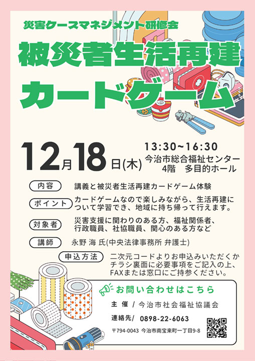 災害支援に関わりのある方、福祉関係者、行政職員、社協職員、関心のある方など